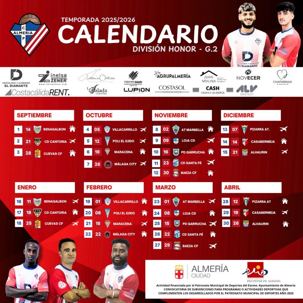 Te dejamos el calendario con todos los partidos del Club Polideportivo Almería en División de Honor – Grupo 2