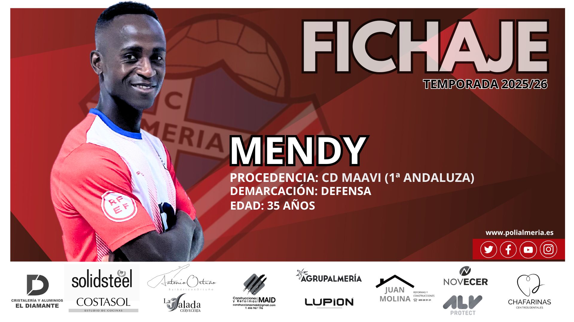 Mendy, 35 años, defensa (Senegal), es el nuevo fichaje del Poli Almería. Un trotamundos del fútbol, que llega a nuestro club con la mayor de las ilusiones, aportando veteranía y experiencia para una temporada que se presenta muy interesante.