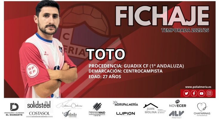 Antonio Martínez Rueda, conocido futbolísticamente como Toto, se convierte en el primer fichaje para la temporada 2025/2026. Toto procede del Guadix CF, con el que jugó los 10 últimos partidos de la temporada. Siendo pieza clave en la Fase de Ascenso a División de Honor, llegando a la final, donde anotó un gol.